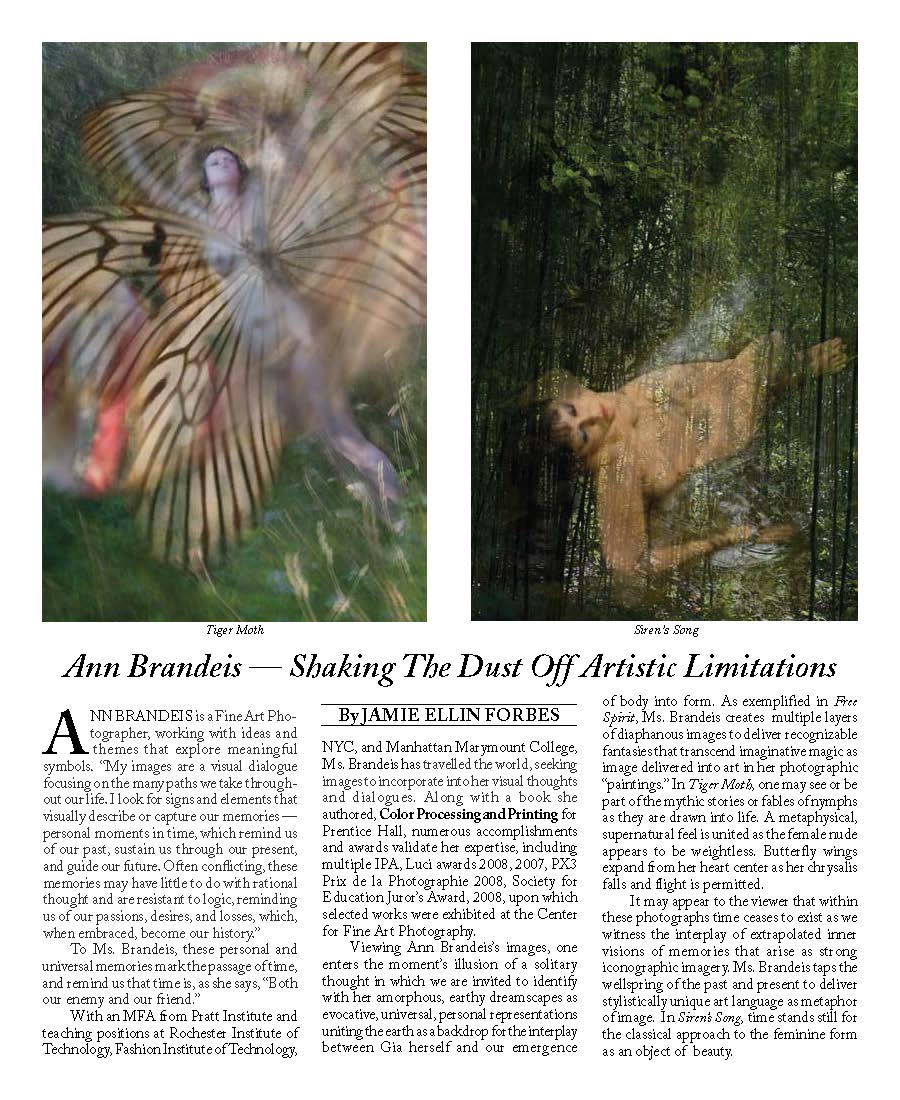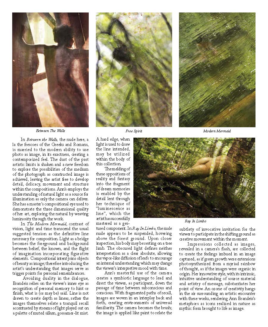 “Brandeis works on her photographic works as a painter would on a canvas. She assumes control over various elements, such as the subject, background, foreground, and additional components, to bring her creative vision to life. In addition to her digital work, she employs a diverse range of techniques, including printing on Kozo paper, transfer printing, and hand-drawing and colouring the final print. All of her images are printed on handmade Japanese Kozo paper, characterized by its beautiful, ragged edges.”